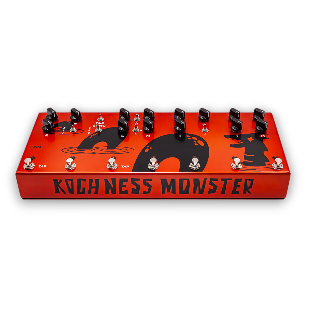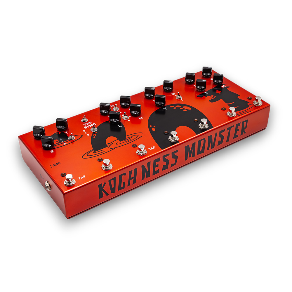 「Kochness Monsterは、シンプルながらも投げるだけですぐに使える、オレンジ色の装いで夜の音を操る戦士。JAM PEDALSの栄光を4つのフレーバーで堪能し、 ロックの世界に旅立ちましょう!」