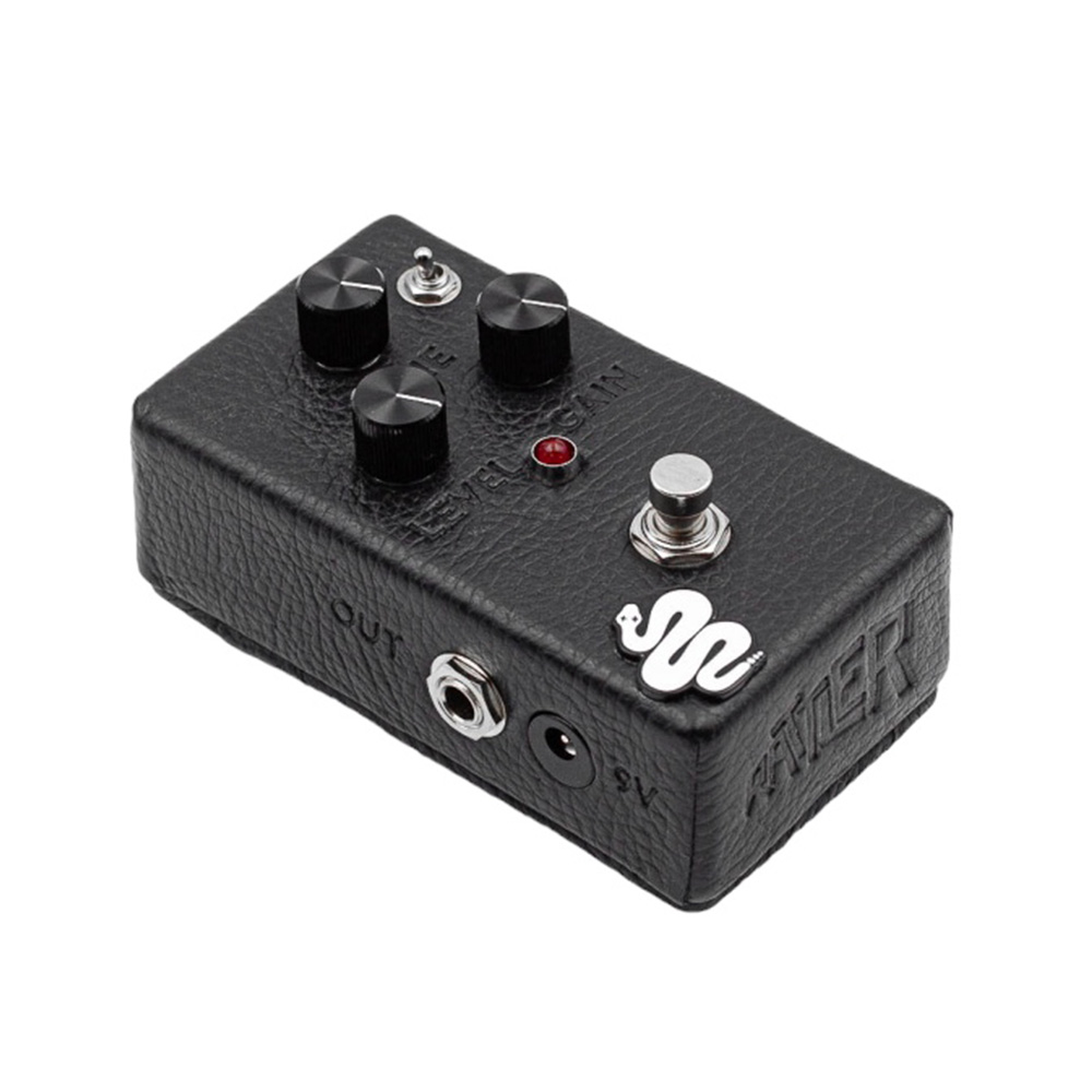 Rattler ltdは、NOS LM308AH can-versionチップをコアサウンドに採用し、対称クリッピング回路を搭載しています。トーンは標準のRattlerよりも滑らかで、やや柔らかめです。トグルスイッチでゲイン段を低くすることで、よりオープンなオーバードライブのようなキャラクターが得られ、コンプレッションの少ない、倍音豊かなテクスチャーを探求できます。