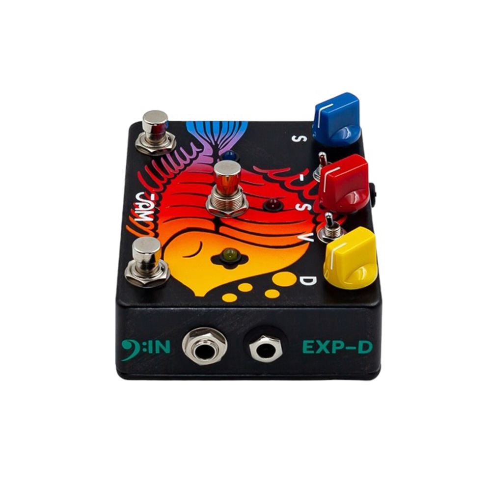 中央のフットスイッチは、任意の時点でのWaterFallの速度を3倍にし、レスリースピーカーのシミュレーションからリングモジュレーターエフェクト、さらには異常な震えまで、さまざまなサウンドを生成します。