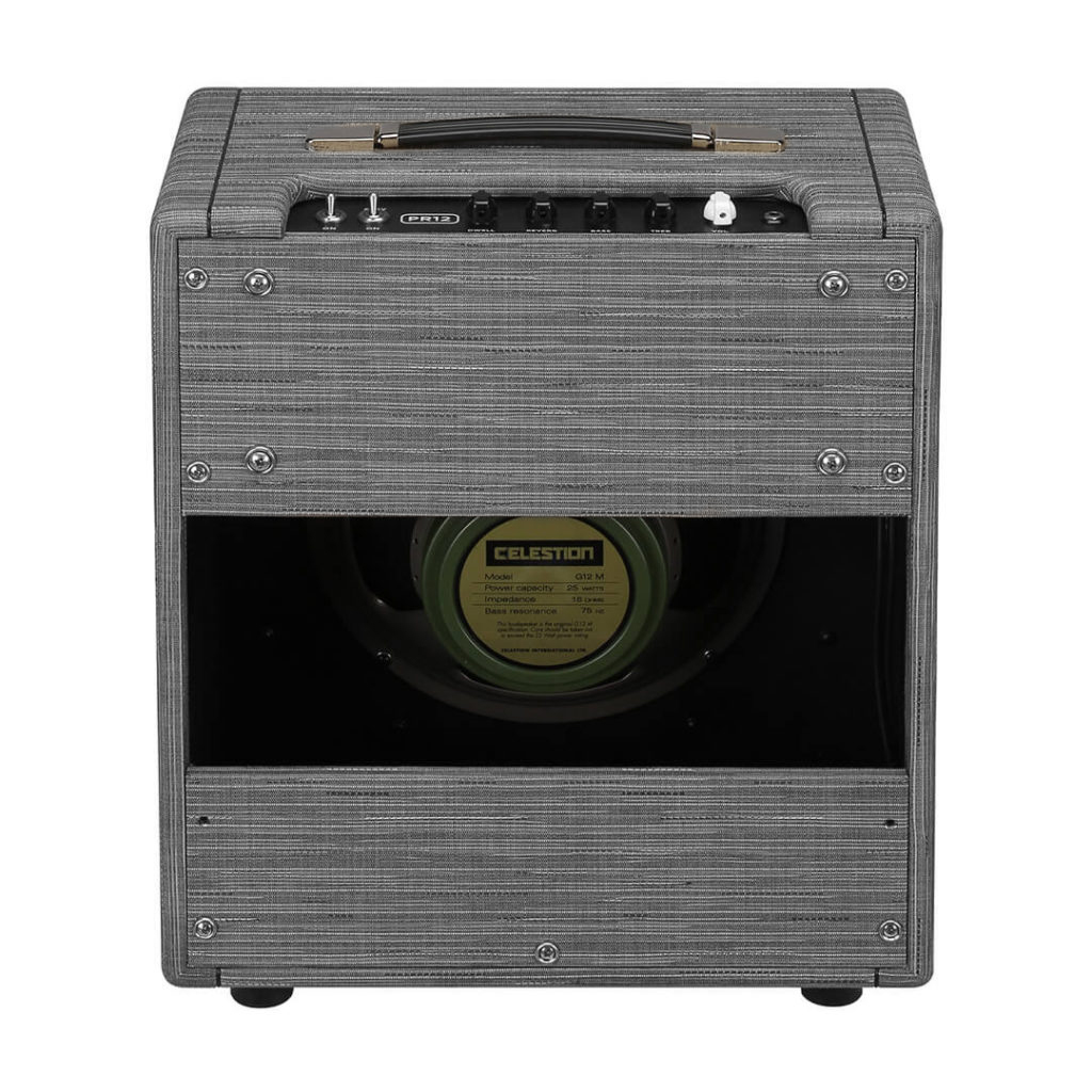 オープン・バックの構造で、セレッションの12インチ・スピーカーG12M-25 Greenback(16Ω)を1基搭載しています。