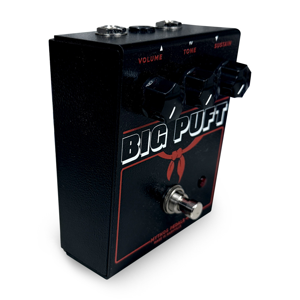 Mythosの全ペダル同様、各ノブに最適な機能性とテーパーを実現するよう追求しています。Sustainコントロールは幅広いゲインサウンドをカバーするため、Big Puftはまろやかで滑らかな音から灼熱のファズレベルまで自在に表現可能。まさに万能です!象徴的なBMP回路に着想を得つつ、このスタイルのペダルが生み出すお気に入りのサウンドを融合させたような設計となっています。
