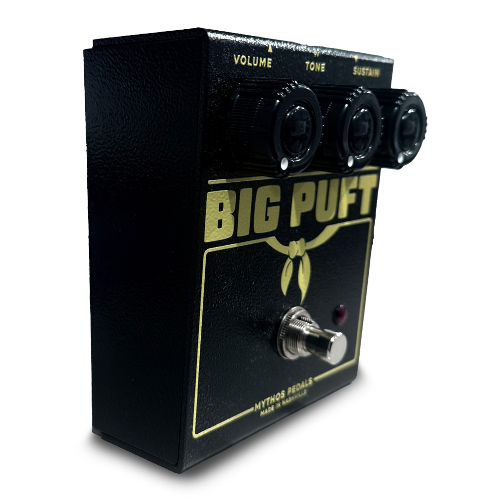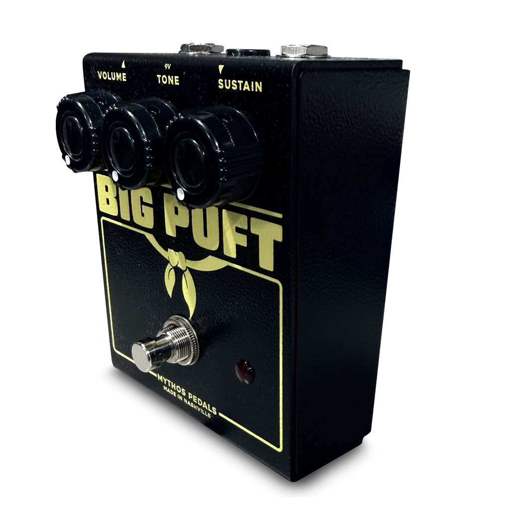 Mythosの全ペダル同様、各ノブに最適な機能性とテーパーを実現するよう追求しています。Sustainコントロールは幅広いゲインサウンドをカバーするため、Big Puftはまろやかで滑らかな音から灼熱のファズレベルまで自在に表現可能。まさに万能です!象徴的なBMP回路に着想を得つつ、このスタイルのペダルが生み出すお気に入りのサウンドを融合させたような設計となっています。