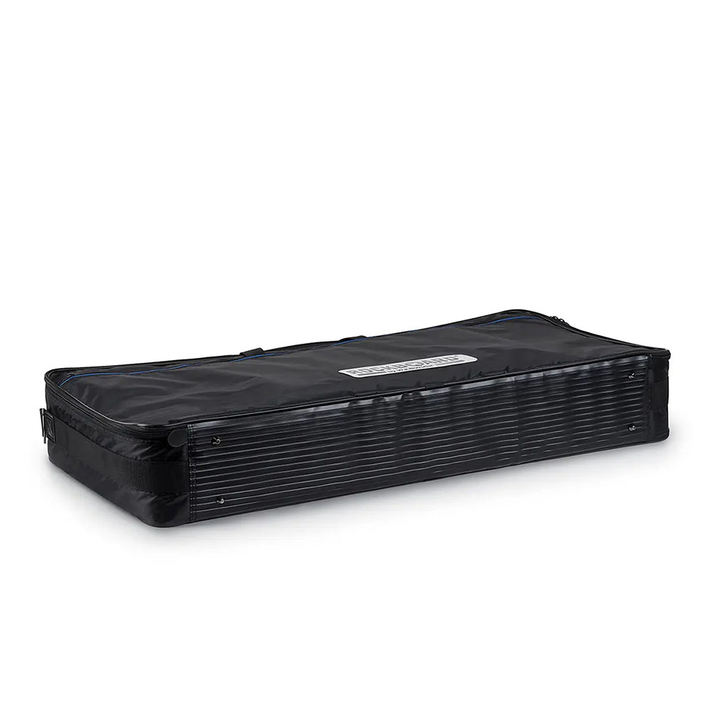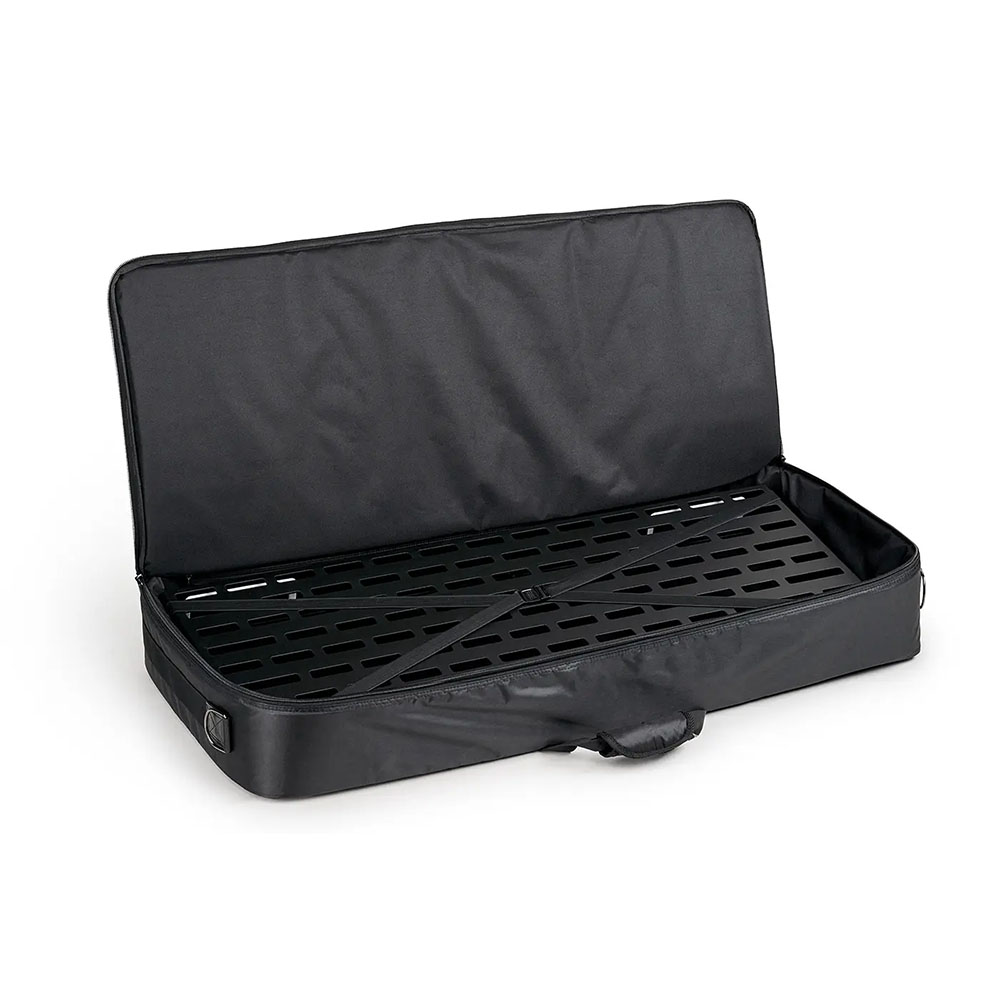 冷間圧延アルミニウムの一枚板から作られた独創的で軽量、かつ堅牢で頑丈な構造は、垂直方向のサポートストラットによって安定性を高め、溶接継ぎ目は一切ありません。その結果、完全にフラットでねじれに強い表面が実現し、端から端まで使用できます。革新的なスロットデザインにより、すべてのケーブルをボード表面の下に便利かつすっきりと配線できます。精密に設計されたスロットパターンは、革新的なQuickMountシステムにぴったりフィットし、面ファスナーは不要です。ほぼすべての一般的な電源を底面に取り付けることができます。安全な持ち運びのために、プレミアムギグバッグが付属しています。